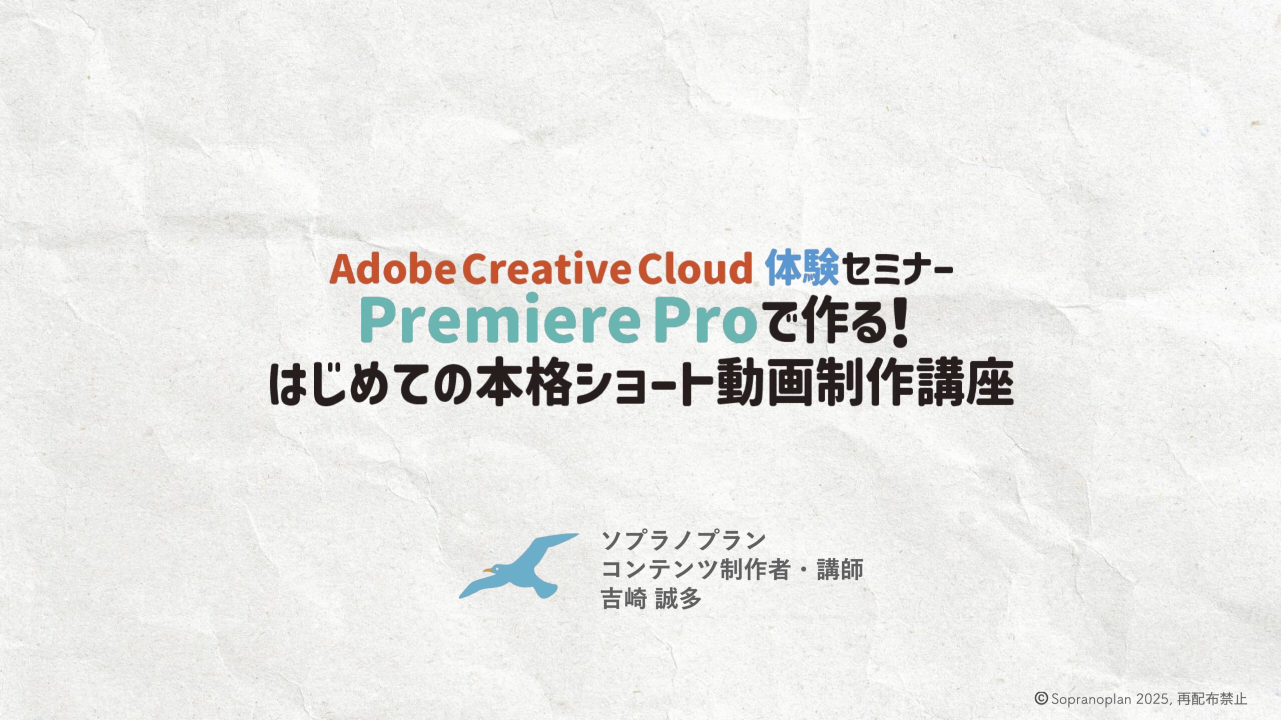駒澤大学総合情報センター様主催のセミナーにて、Premiere Proを使ったショート動画制作のレクチャーを担当させていただきました。初めて触れるプロ用ツールと大学の公式素材を使って、計6時間の時間内で学校のPR動画を作るという難易度の高い内容でしたが、参加者のみなさん全員作品を発表するところまで着いてきていただきました。